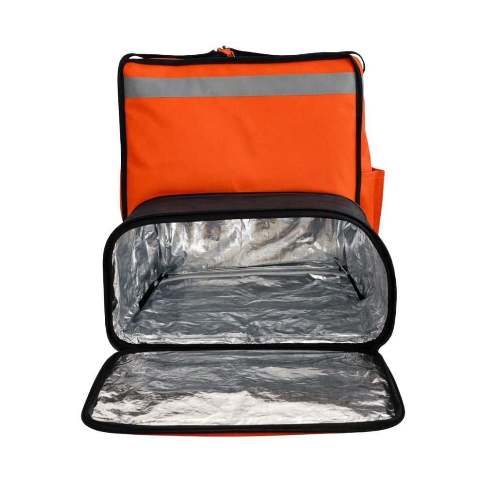 Mochila térmica ideal para repartidores y negocios que requieren transportar alimentos y bebidas conservando su temperatura. Su diseño estructurado brinda capacidad, durabilidad y eficiencia en cada entrega.